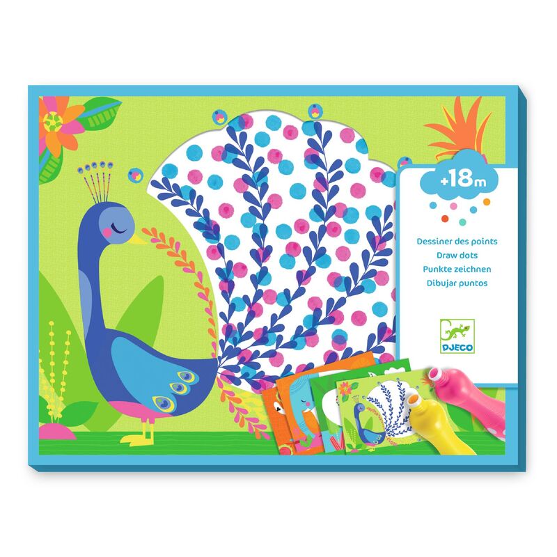 A beginner's colouring set perfect for children aged 18 months and up. Chunky foam markers included. Dot by dot, fill in the animal shapes. You can add dots side by side or layer them on top of each other to create your own colourful designs. All that's left to do is close the pocket and reveal beautiful pictures.
