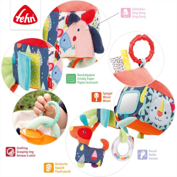 The Activity House is a soft and interactive toy for babies aged 0+ months, designed to promote sensory exploration and motor skill development. Featuring a rattle, crinkly paper, mirror, squeaky dog, and colourful grasping rings, it encourages touch, hearing, and hand-eye coordination. With a practical C-ring for easy attachment to prams, car seats, or play gyms, it’s perfect for play at home or on the go and makes an ideal gift for baby showers, birthdays, or special occasions.