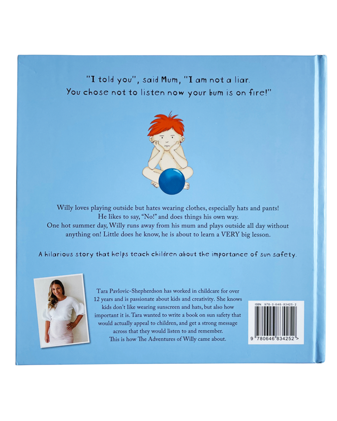 The Adventures of Willy and his Sunburnt Bum! A 32 page hardcover children's book written by Tara Pavlovic-Shepherdson.