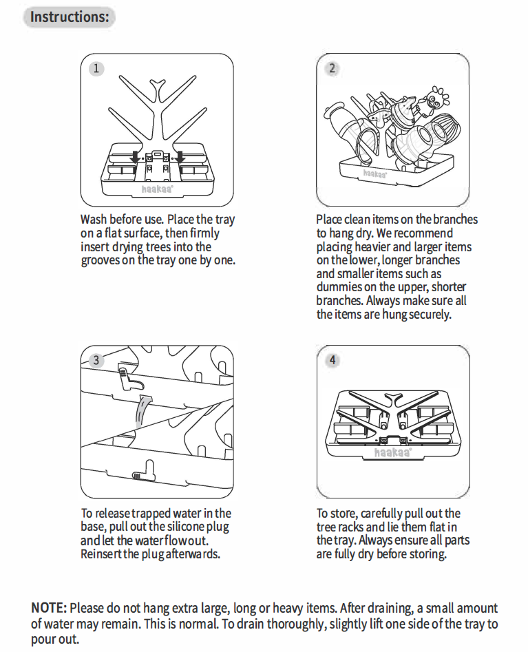 Dry your baby gear or everyday items with the Easy-store Drying Tree and Tray Set! Simply slot each of the three trees into the sturdy base, wash your bottles, dummies, pumps or any other everyday items, and hang them on the tree to air dry. The plug allows water to drain away with ease while the trees nestle into the base after use, making storage easier than ever.