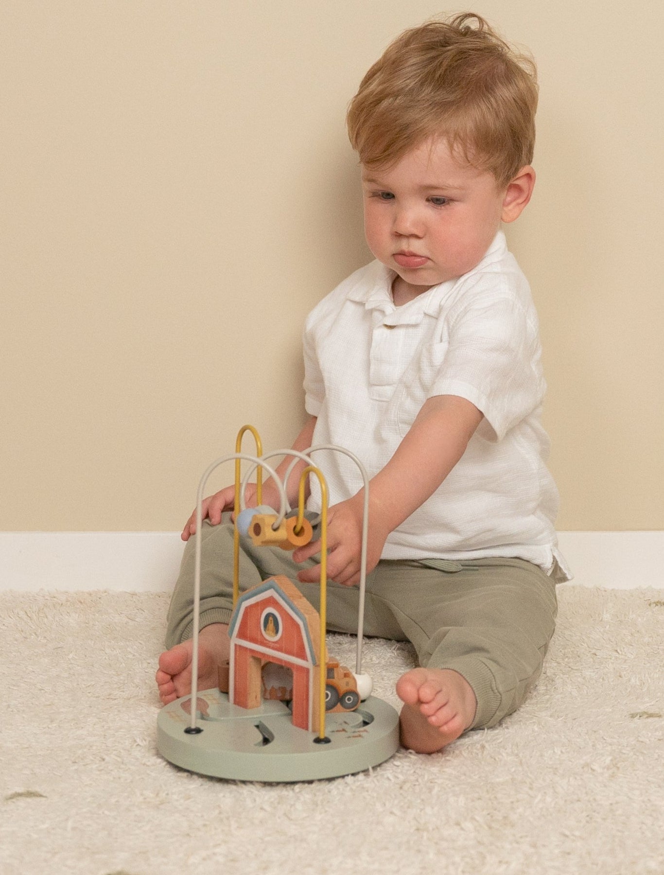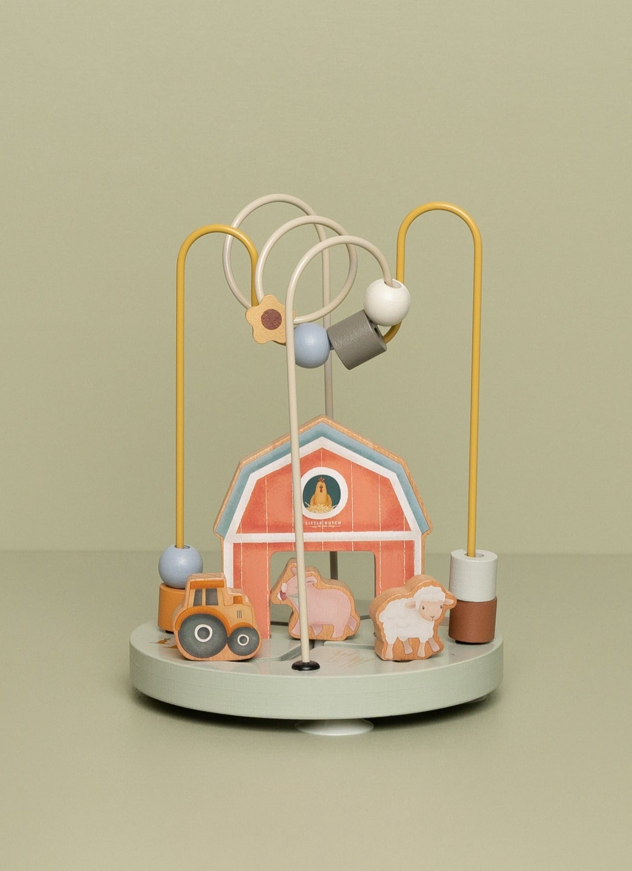 This wooden farm-themed activity spiral offers an educational activity for your child. Move the blocks, the tractor, the pig, and the sheep from one side to the other! Fun is guaranteed.