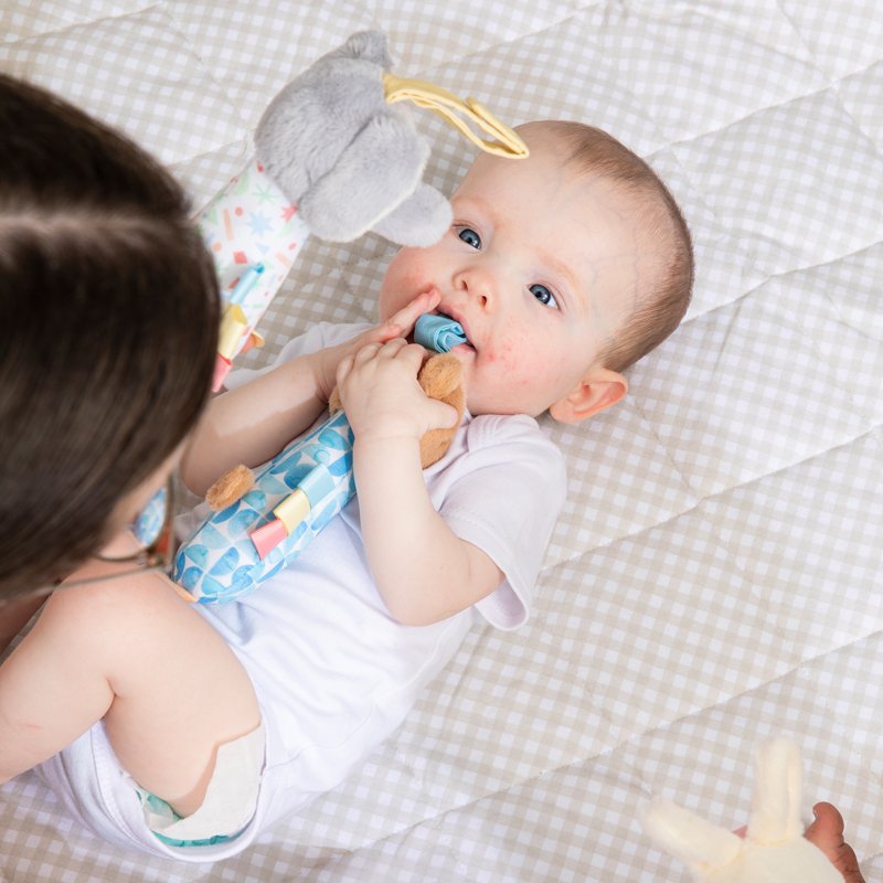 Hello World is suitable for bubs aged 0 to 3 months old and outlines a foundation of core skills that will develop over the coming year. In this box we have carefully curated 5 play offerings to help your little one with the initial concepts of coordination and building strength in their hands, whilst providing visual stimulation to keep them occupied and entertained.