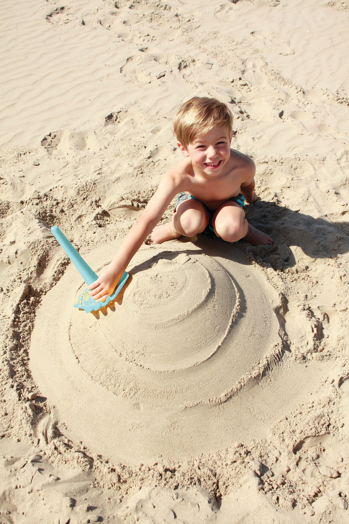 Part shovel, to help kids dig holes, build foundations and carve out moats, part sand sifter, to help remove shells and other sediment, for smooth, shapeable sand, part rake, to let kids create extra designs. The hollow handle can even be used as water funnel to finish off the coolest sandcastles ever with sand art!