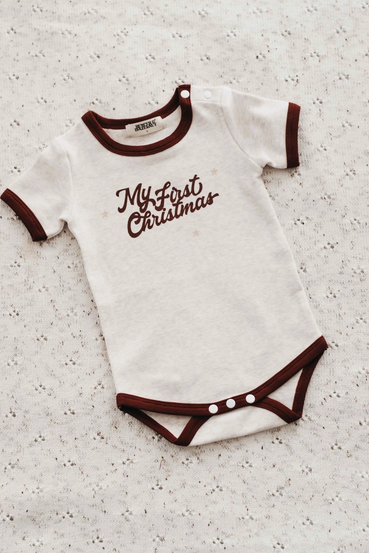 Celebrate your little one’s first Christmas in this soft, short sleeve bodysuit by Bencer & Hazelnut. Made from comfy jersey cotton with charming hand-drawn designs, it’s perfect for festive fun and cozy cuddles.