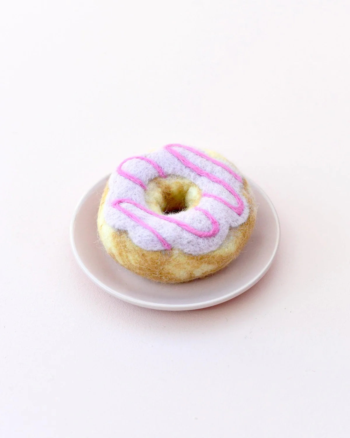 This listing is for 1 felt doughnut. Each doughnut has been meticulously needle-felted with dense wool that has been dyed with non-toxic colours, making it safe for play.