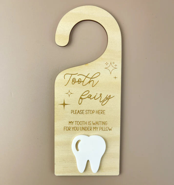Children can hang this sign on their bedroom door to remind the Tooth Fairy that they have a newly lost tooth ready for collection