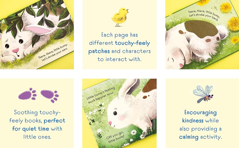 Stroke the sweet, snuggly bunny better in this adorable touchy-feely book. Little bunny needs your care! Stroke its ears when it's scared, rub its nose better after an encounter with a tickly bug, and stroke its back when it's feeling sleepy. This heart-warming book encourages kindness in very little children as you gently rub the bunny better from minor mishaps.